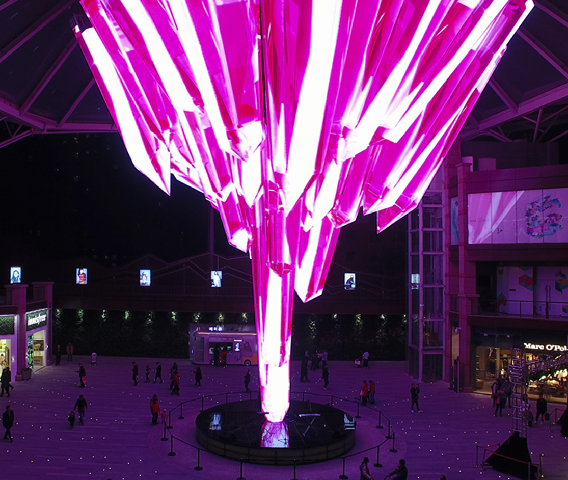 西安老城根Gpark,全球首个3300米公园式多元业态娱乐大道,为最具中国代表性的主题概念商业文化广场,其中晶彩广场中心的水晶锥形屏为最大亮点。德豪lewin乐玩凭借着在异形屏领域解决方案的实力,创造了众多第一。