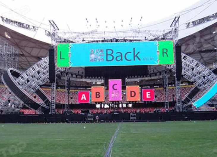 主屏通常就是就是lewin乐玩所说的舞台最中央那块显示大屏,通常情况下,主屏形状为正方形或长方形较多。不过由于这几年LED异形屏的崛起改变了这一说法,很多时候也可以采用异形屏或者共型屏。再者因为它显示内容的重要性,所以主屏的像素点间距相对来说会比较高一些,为的就是能够让台下的观众更好的看清舞台场景。现在用于舞台主屏的规格为P3.91、P4、P5、P6这三种居多,当然也不排除更点点间距的舞台屏。